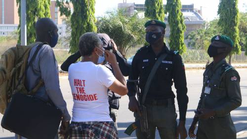 “I am saying it categorically that the government is conniving, conspiring and assisting this crime against humanity, and that is why I am here to protest. I came here now, but the officers are saying that I cannot exercise my rights.”