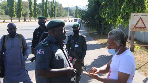 The activist was stopped by the policemen attached to the gate near the Federal Secretariat while heading toward the Presidential Villa.