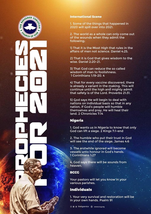 Pastor Adeboye of the Redeemed Christian Church of God has released his prophecies for 2021 hours after the RCCG crossover service.
